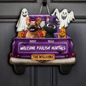 Welcome Foolish Mortals – Personalized Custom Shaped Wood Sign