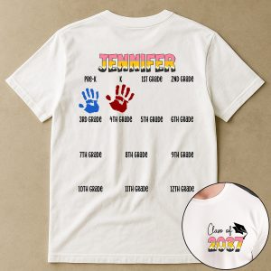 Back To School Grow With Me Grad Handprint For Preschool To 12th – Personalized Shirt
