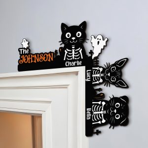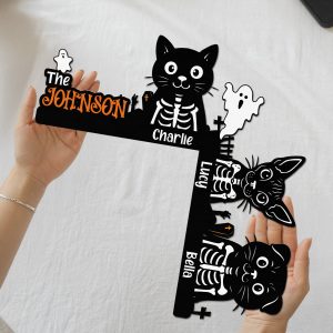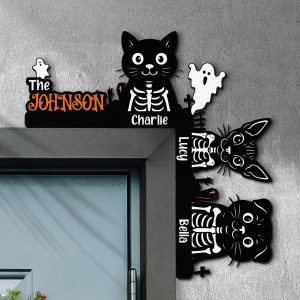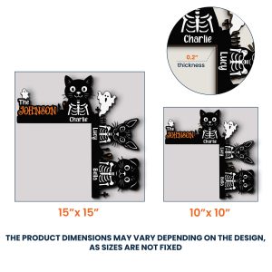 Make your Halloween more unique and personal with our distinctive Halloween Skeleton Pet With Custom Family Name – Personalized Door Corner Wood Sign. Crafted from superior wood material, this sign goes beyond just home decoration; it’s a symbol of familial bonding and a statement of personal touch. The sign can be personalized with your own family name, making it seamlessly blend with your family décor. Beautifully carved, the charming black cat design adds a spooky ambiance that perfectly suits the Halloween mood.