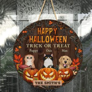 Are you a pet lover and a fan of Halloween? Do you want to delight your visitors with your creative and hilarious door decoration? If so, you’ll love this personalized round wood sign. It features three customized witty and adorable quote that says “Happy Halloween/Happy Hallowoof/Happy Hallomeow’. You can customize it with your preferred pet breeds and the number of pets you want to show off. It’s a great gift for your friends and family who are pet lovers and Halloween enthusiasts. You can hang it on your door, wall, or anywhere you like. It will add a splash of humor and spookiness to your Halloween decor. This personalized round wood sign is the best gift for pet lovers who have a sense of humor.
