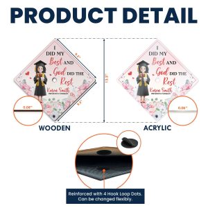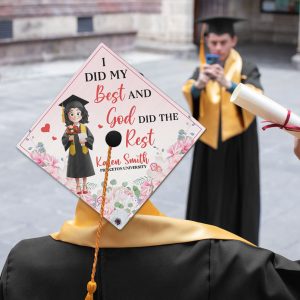 Celebrate this incredible milestone with a Personalized Graduation Cap Topper that reflects faith, perseverance, and achievement. Featuring the inspiring quote ‘I Did My Best And God Did The Rest,’ this cap topper is a beautiful way to honor the journey, hard work, and blessings that led to this moment.