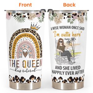 Honor a special retiree and their accomplishments with a custom tumbler made just for them. With meaningful designs and personalization, this stainless steel tumbler makes a thoughtful retirement gift. This tumbler makes a perfect retirement party favor to celebrate the colleague, family member or friend who has given so much. Whether they worked tirelessly for decades or raised a loving family, this tumbler commemorates all they’ve achieved. The personalized details make it a meaningful gift honoring their legacy. Surprise the recent retiree in your life with a tumbler radiating warmth and gratitude. They’ll be reminded of the positive impact they’ve made each time they use it. Let it serve as a token of appreciation for all the good times ahead.Â