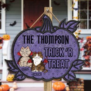 Ideal for families, friends, or anyone who adores cats, this personalized pumpkin-shaped wood sign also makes a thoughtful gift. With personalized touch, it will be a cherished part of your Halloween celebrations for years to come. Embrace the spirit of the season and showcase your love for your feline friends with a unique and spooky decoration that’s sure to delight all who see it!