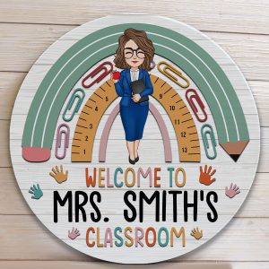 A perfect personalized teacher door sign to welcome your students or visitors to your classroom.