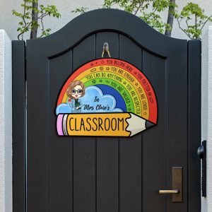 The sign comes with a variety of customization that can be changed to resemble the teacher as close as possible.
